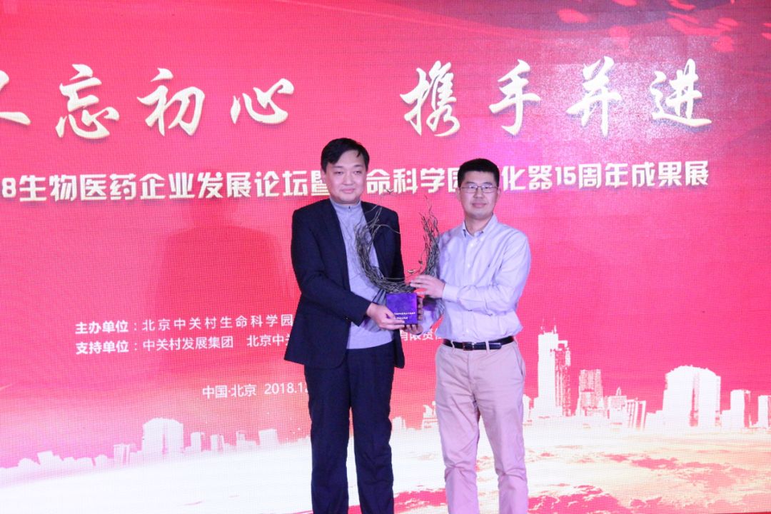 在本次論壇上,北京卓誠惠生生物科技股份有限公司副總經(jīng)理王雷代表公司向中關村生命園孵化器贈送15周年紀念品——鳳巢雕塑,祝愿孵化器將來有更多“金鳳凰”從這里騰飛。