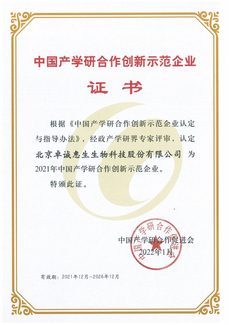 - 中國產(chǎn)學研合作創(chuàng)新示范企業(yè)